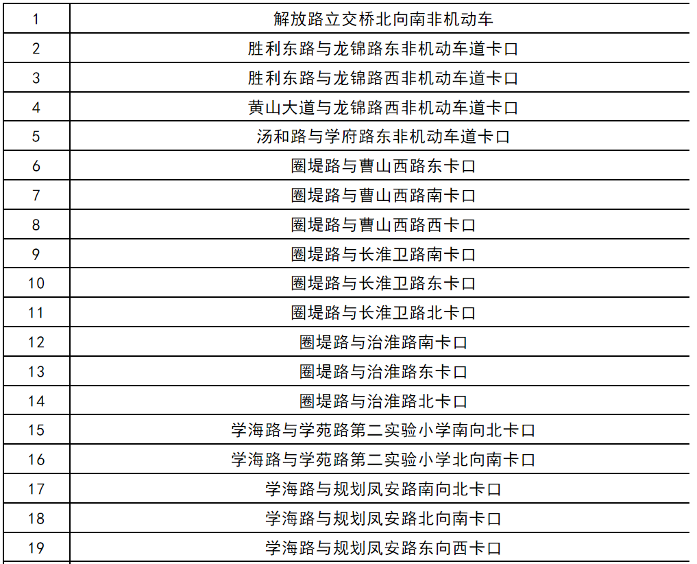 公告显示,为进一步规范道路交通秩序,有效预防和减少道路交通事故,根据相关法律,蚌埠市公安局交通管理支队将在市区新增一批非机动车交通违法行为抓拍设备,对骑乘电动自行车未佩戴安全头盔,非机动车未在非机动车道内行驶、逆向行驶、闯红灯等交通违法行为实施抓拍,现将交通技术监控设备设置点公告如下:
