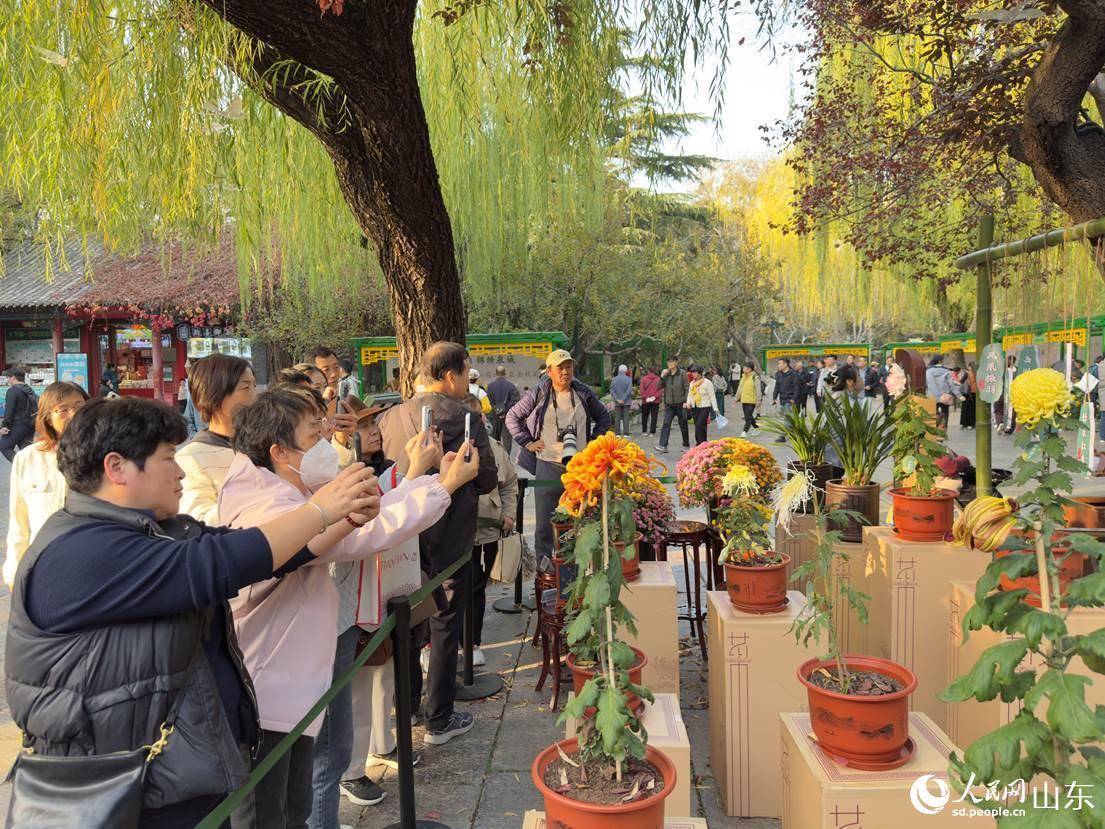 趵突菊韵,锦绣泉城。第46届趵突泉金秋菊展进入客流高峰期。以趵突泉景区为核心,围绕“一脉清泉串四区、菊景交融耀八景”构建展陈格局,集中呈现菊花造型、菊花小景、品种菊、大立菊、扎菊、悬崖菊、盆景菊等七大展项,展出300余个品种,并设置三条打卡路线,提升游客“按线观展、识花赏花”的体验。(庄润泽)
