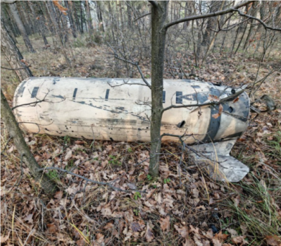 当地时间19日,俄国防部公布被击落的ATACMS导弹残骸照片。图源:俄国防部社交平台“电报”账号